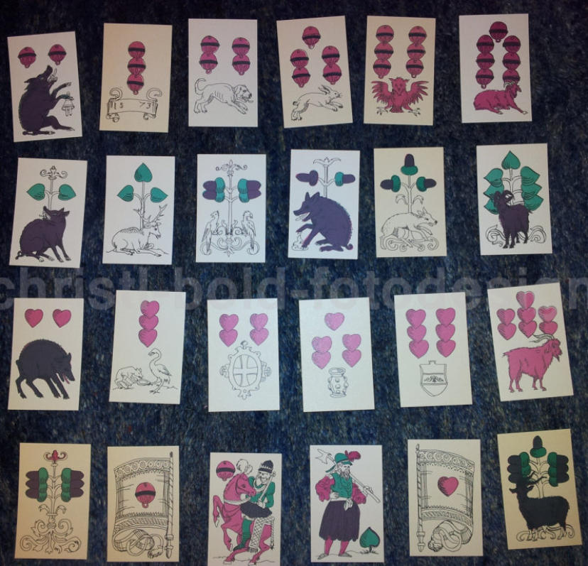 Dass in Karten Tiere abgebildet sind, ist beim Kaisern unüblich. Tatsächlich aber war es in anderen Kartenspielen