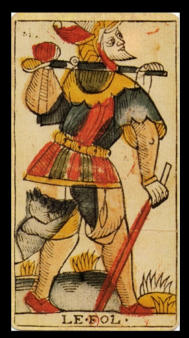 Marseille-Tarot aus dem 16. Jahrhundert nummeriert. Die Karte des Narren trägt traditionell entweder keine Zahl, oder sie wird mit