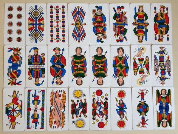 21 Trumpfkarten, plus ein Narr.]